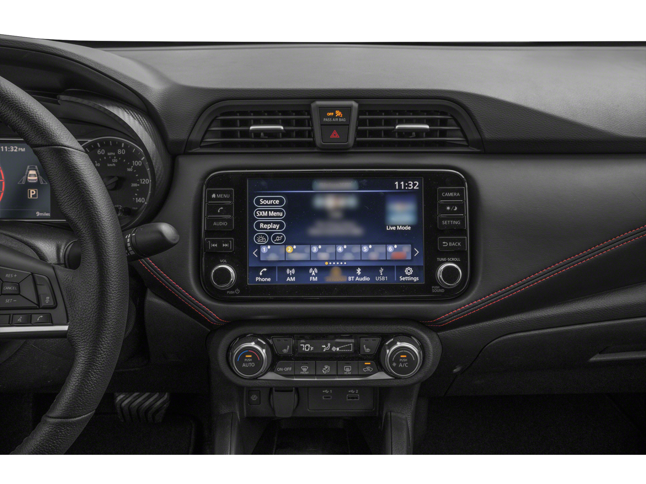• Radio: AM/FM Audio System -inc: RDS, MP3, aux-in, 8" color touchscreen display (A-IVI PH2 DA), SiriusXM satellite radio, NissanConnect Services powered by SiriusXM featuring Apple CarPlay and Android Auto, Bluetooth® hands-free phone system, streaming audio via Bluetooth®, interface for iPod and other compatible devices, hands-free text messaging assistant, Siri Eyes Free/Google Assistant voice recognition, 6 speakers, 3 USB ports (2-charge only)