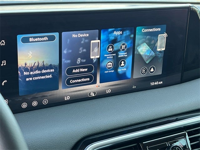 - Radio: NissanConnect w/SiriusXM 360L -inc: 6 speakers w/advanced audio features, 12.3" center touch-screen display, wireless Apple CarPlay and Android Auto, Bluetooth® hands-free phone system, Siri Eyes Free, hybrid radio, 5G capability, 2 USB type-C connection ports in front, Amazon Alexa w/Hotword, voice recognition and system controlled navigation w/traffic information