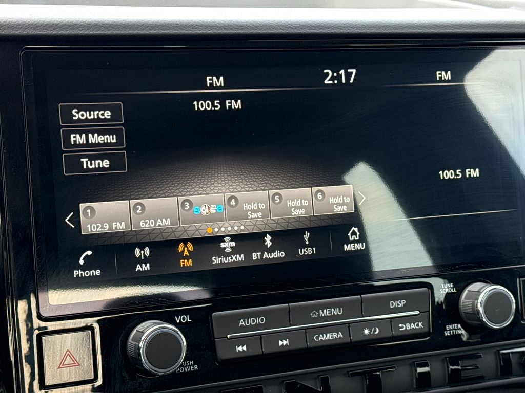 - Radio: SXM/AM/FM/AUX/USB Audio System -inc: 6 speakers, 12.3" color touch-screen display, wireless Apple CarPlay, wireless Android Auto, Bluetooth® hands-free phone system and streaming (audio or text message), voice recognition for audio features, Siri Eyes Free, NissanConnect services, Wi-Fi hotspot, 1 USB-A and 1 USB-C front ports and SiriusXM radio w/advanced audio features