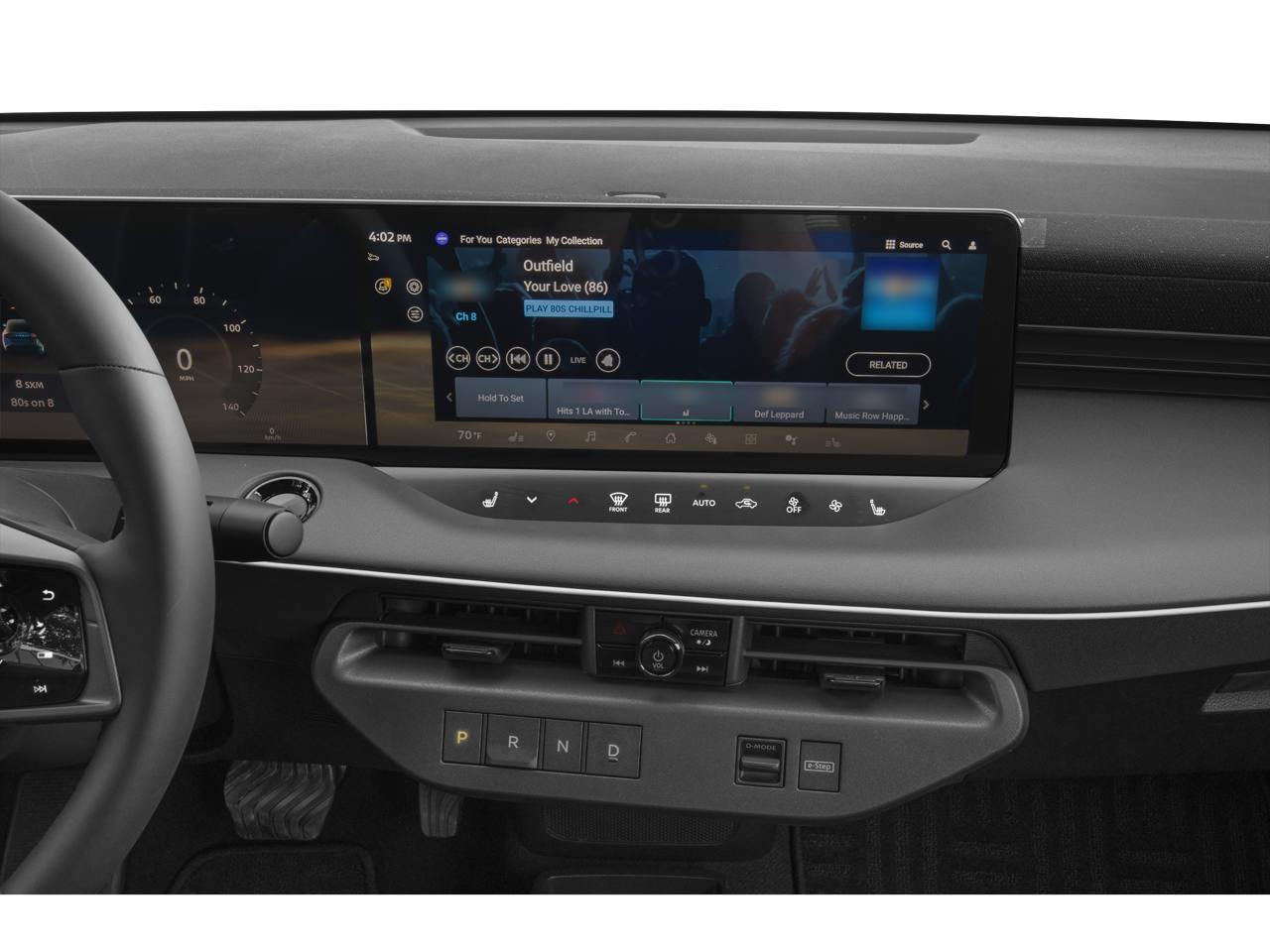 - Radio: NissanConnect w/Navigation -inc: 14.3" center touch-screen display w/Google built in, wireless Apple CarPlay, wireless Android Auto, Bluetooth® hands-free phone system, hands-free text messaging assistant, streaming audio via Bluetooth®, voice recognition, SiriusXM w/360L, 2 front USB type C, in-vehicle data and Wi-Fi and wireless phone charger