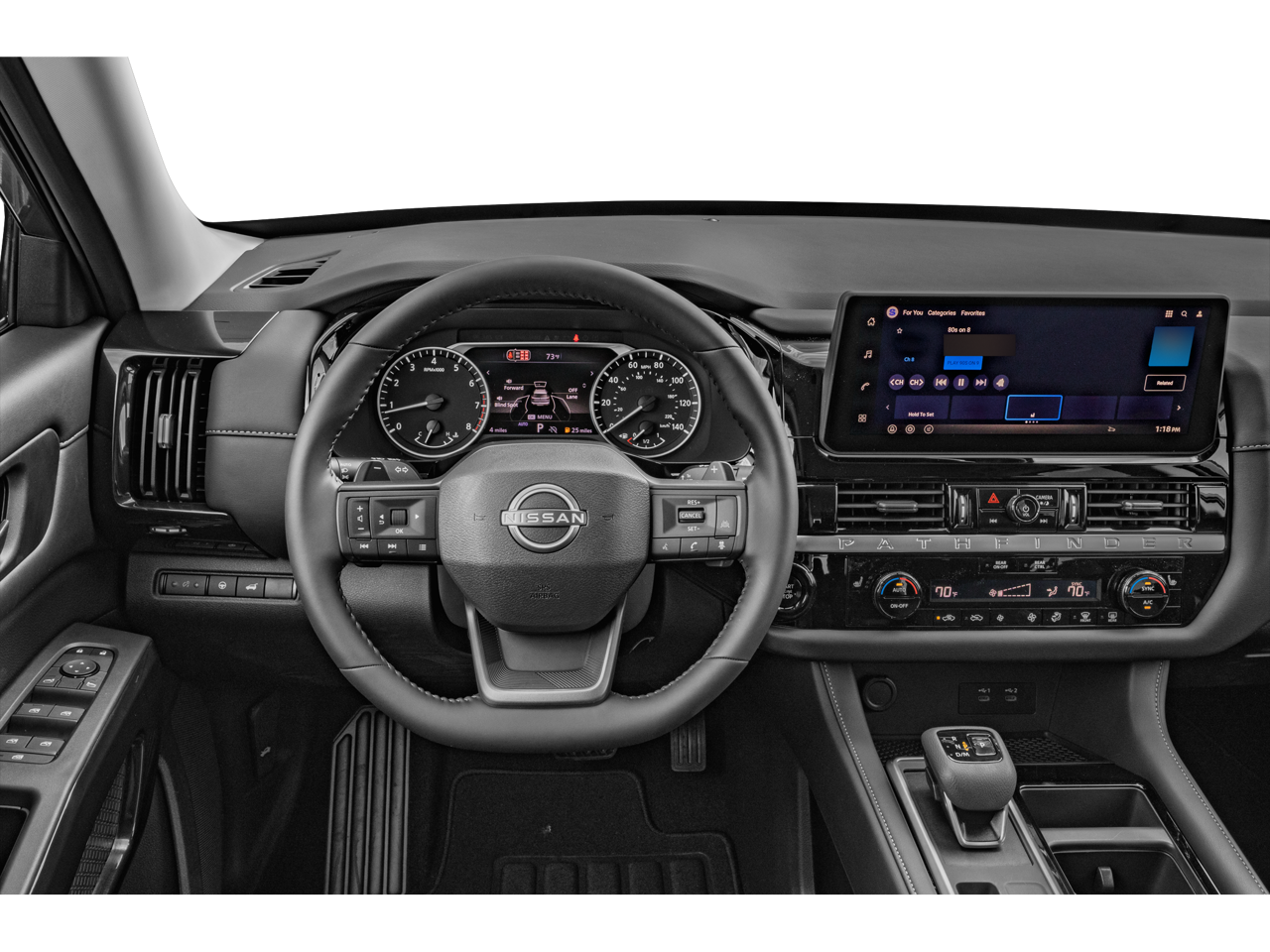 Inside, the Pathfinder SV pampers you with dual-zone automatic climate control, heated front seats, and a premium audio system with SiriusXM and NissanConnect, seamlessly integrating your smartphone via Apple CarPlay and Android Auto.