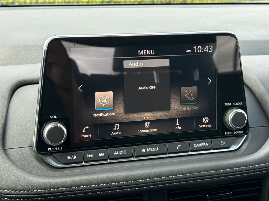 - Radio: AM/FM NissanConnect -inc: 6 speakers plus 2 tweeters, Apple CarPlay, Android Auto, 8" color touch screen display, Bluetooth®, 2 front USB type-C, Wi-Fi hotspot and NissanConnect Services powered by SiriusXM