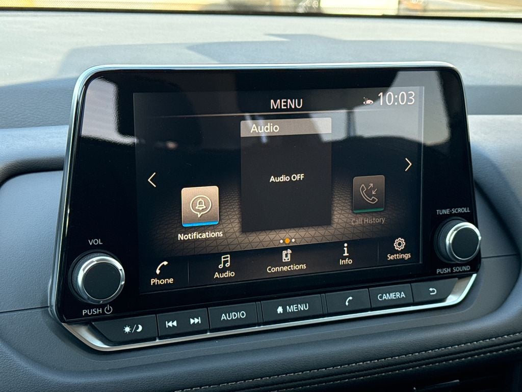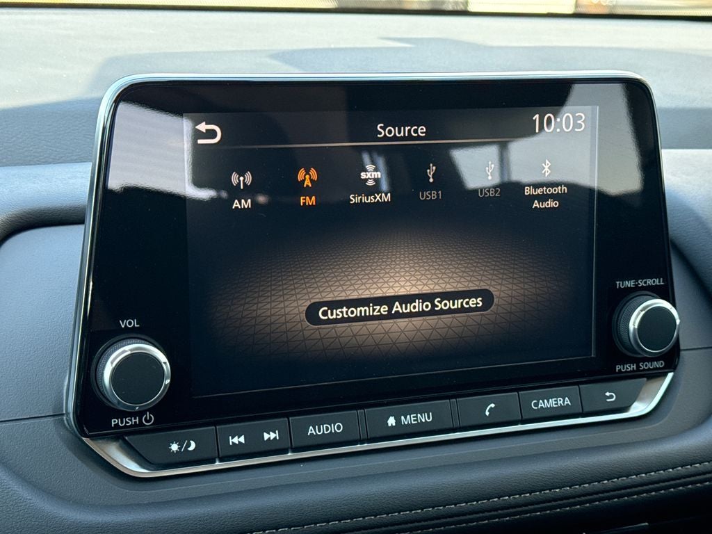 - Radio: AM/FM NissanConnect -inc: 6 speakers plus 2 tweeters, Apple CarPlay, Android Auto, 8" color touch screen display, Bluetooth®, 2 front USB type-C, Wi-Fi hotspot and NissanConnect Services powered by SiriusXM
