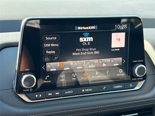 - Radio: AM/FM NissanConnect -inc: 6 speakers plus 2 tweeters, Apple CarPlay, Android Auto, 8" color touch screen display, Bluetooth®, 2 front USB type-C, Wi-Fi hotspot and NissanConnect Services powered by SiriusXM