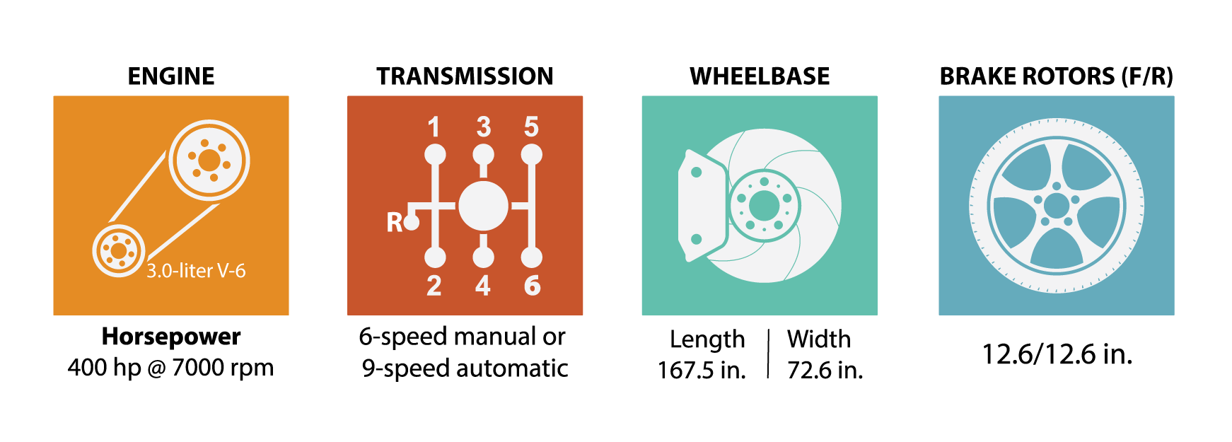 - 400 horsepower from a 3.0L V6 double-turbo engine