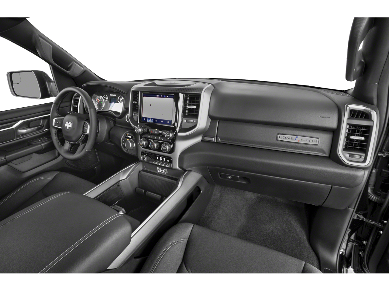 Ram 1500 Big Horn/Lone Star Bluetooth®, Back Up Camera, Cruise Control, 115V Auxiliary Power Outlet, 2nd Row In Floor Storage Bins, 3 Rear Seat Head Restraints, 4 Way Front Headrests, 400W Inverter, 4G LTE Wi-Fi Hot Spot, 6 Speakers, Air Conditioning, Alloy wheels, Apple CarPlay/Android Auto, Auto High-beam Headlights, Auto Power-Folding Mirrors, Auto-Dimming Exterior Driver Mirror, Auto-Dimming Rear-View Mirror, Big Horn Badge, Big Horn Level 1 Equipment Group, Black Exterior Mirrors, Black Premium Power Mirrors, Brake assist, Convex Wide-Angle Exterior Mirror Insert, E-Locker Rear Axle, Electronic Stability Control, Exterior Mirrors Courtesy Lamps, Exterior Mirrors w/Heating Element, Exterior Mirrors w/Supplemental Signals, Falken Brand Tires, Front Extra HD Shock Absorbers, Glove Box Lamp, GPS Antenna Input, Heated door mirrors, Heated Front Seats, Heated Steering Wheel, Illuminated entry, Integrated Voice Command w/Bluetooth®, Leather Wrapped Steering Wheel, Manual Adjust 4-Way Front Passenger Seat, Manual Folding Exterior Mirrors, Off Road Decals, Off Road Group, Panic alarm, ParkView Rear Back-Up Camera, Power 2-Way Driver Lumbar Adjust, Power Adjust 8-Way Driver Seat, Power Adjustable Pedals, Power door mirrors, Power steering, Power windows, Quick Order Package 23Z Big Horn, Radio: Uconnect 5 W w/8.4 Display, Raised Ride Height, Rear 60/40 Folding Seat, Rear Extra HD Shock Absorbers, Rear Power Sliding Window, Rear Window Defroster, Remote keyless entry, Selec-Speed Control, Steering Wheel Mounted Audio Controls, Sun Visors w/Illuminated Vanity Mirrors, Telescoping steering wheel, Tow Hooks, Trailer Brake Control, Universal Garage Door Opener, Variably intermittent wipers, Wheels: 18 x 8 Cast-Aluminum Painted.